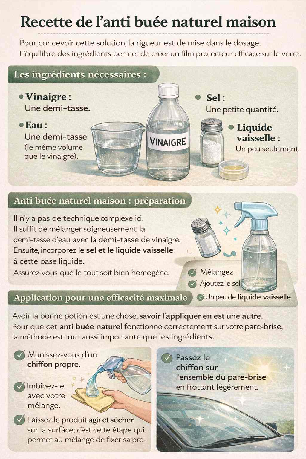 Infographie sur la recette de l’Anti buée naturel maison